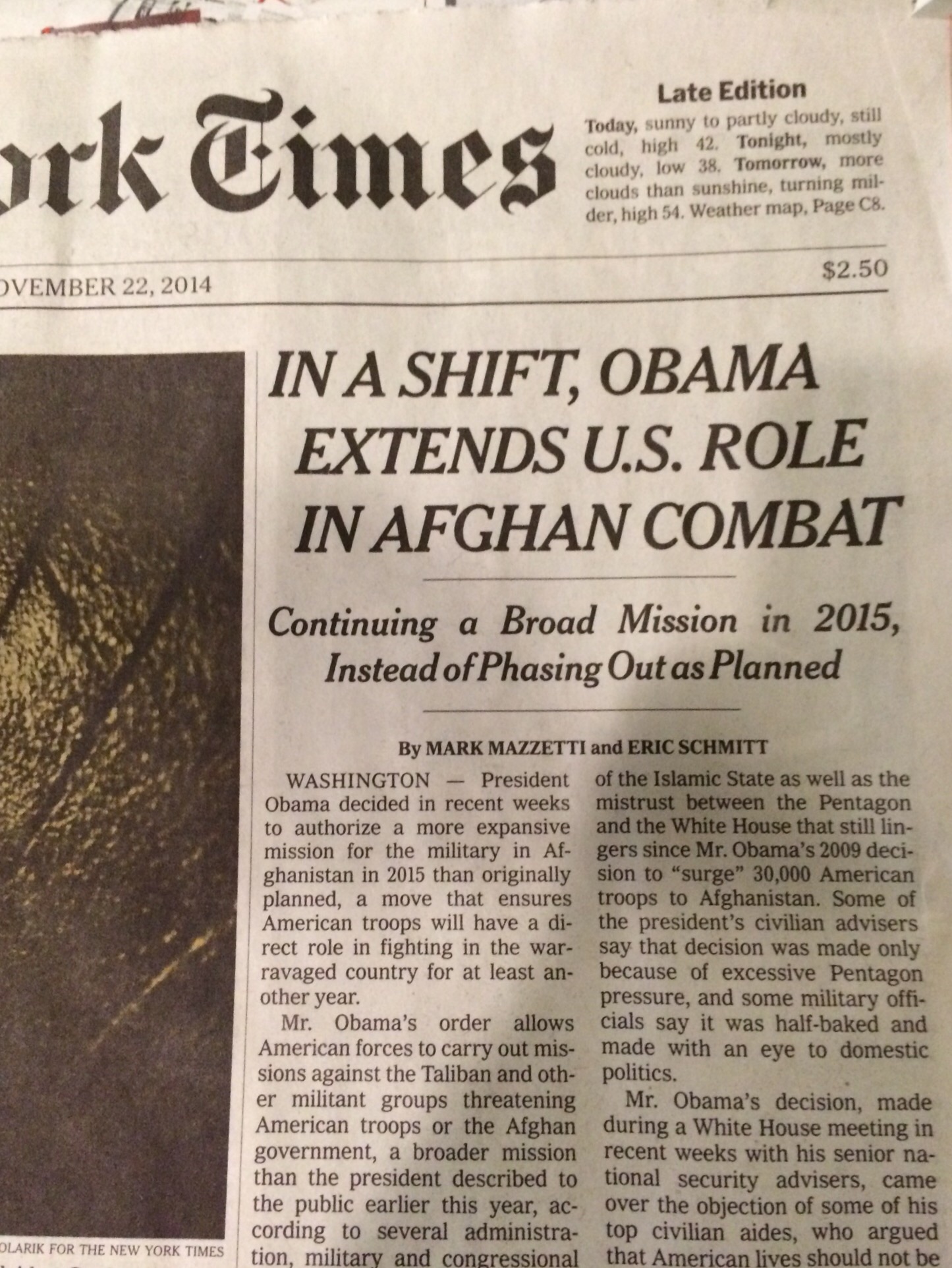 The next morning, however, I noticed the print edition carried the much different headline, “IN A SHIFT, OBAMA EXTENDS U.S. ROLE IN AFGHAN COMBAT.”